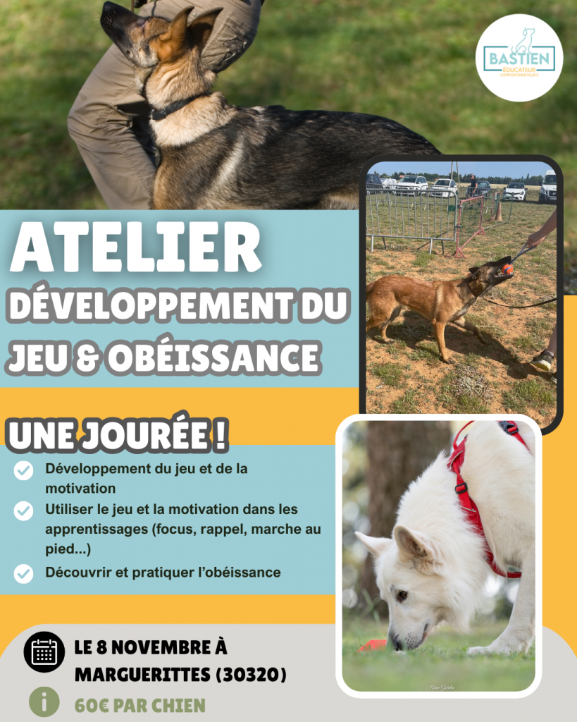 Une journée pour développer le jeu et la motivation du chien, travailler les autocontrôles, la communication et l’intégration du jeu en éducation.