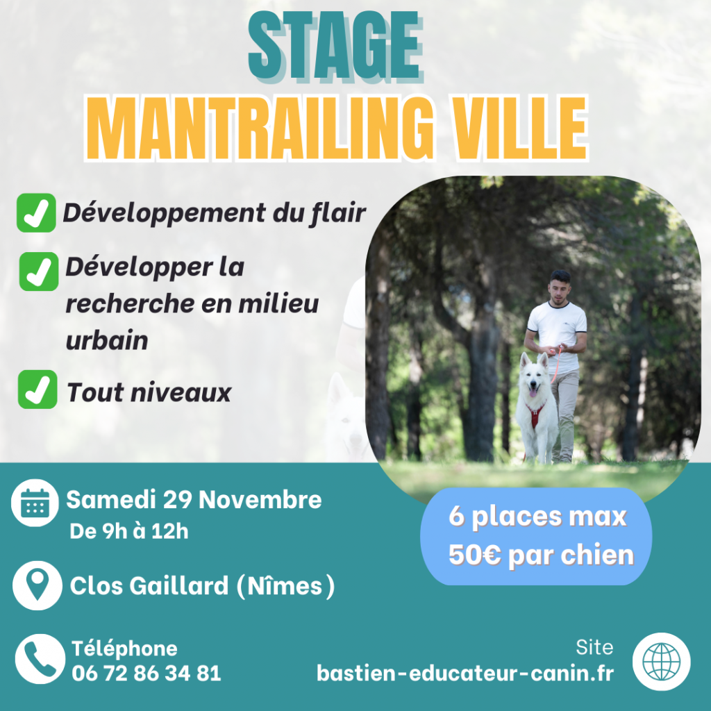 Une demi journée pour découvrir et initier son chien au Mantrailing en urbain! Plongez dans le monde passionnant de l’olfaction canine.